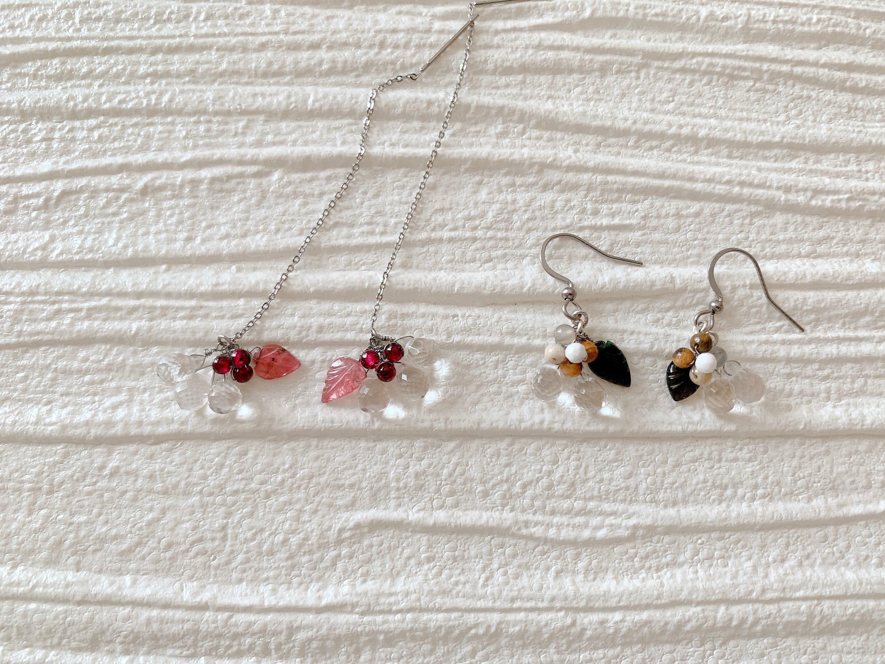 チェーンタイプのピアスに仕上げていますが、少し雰囲気は変わってしまっても良ければイヤリングに変更できます。