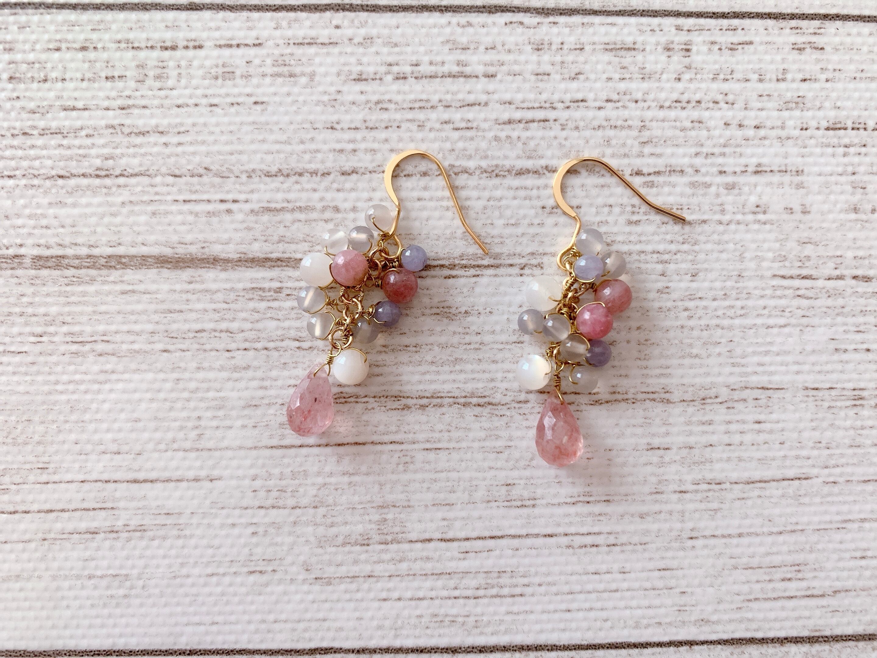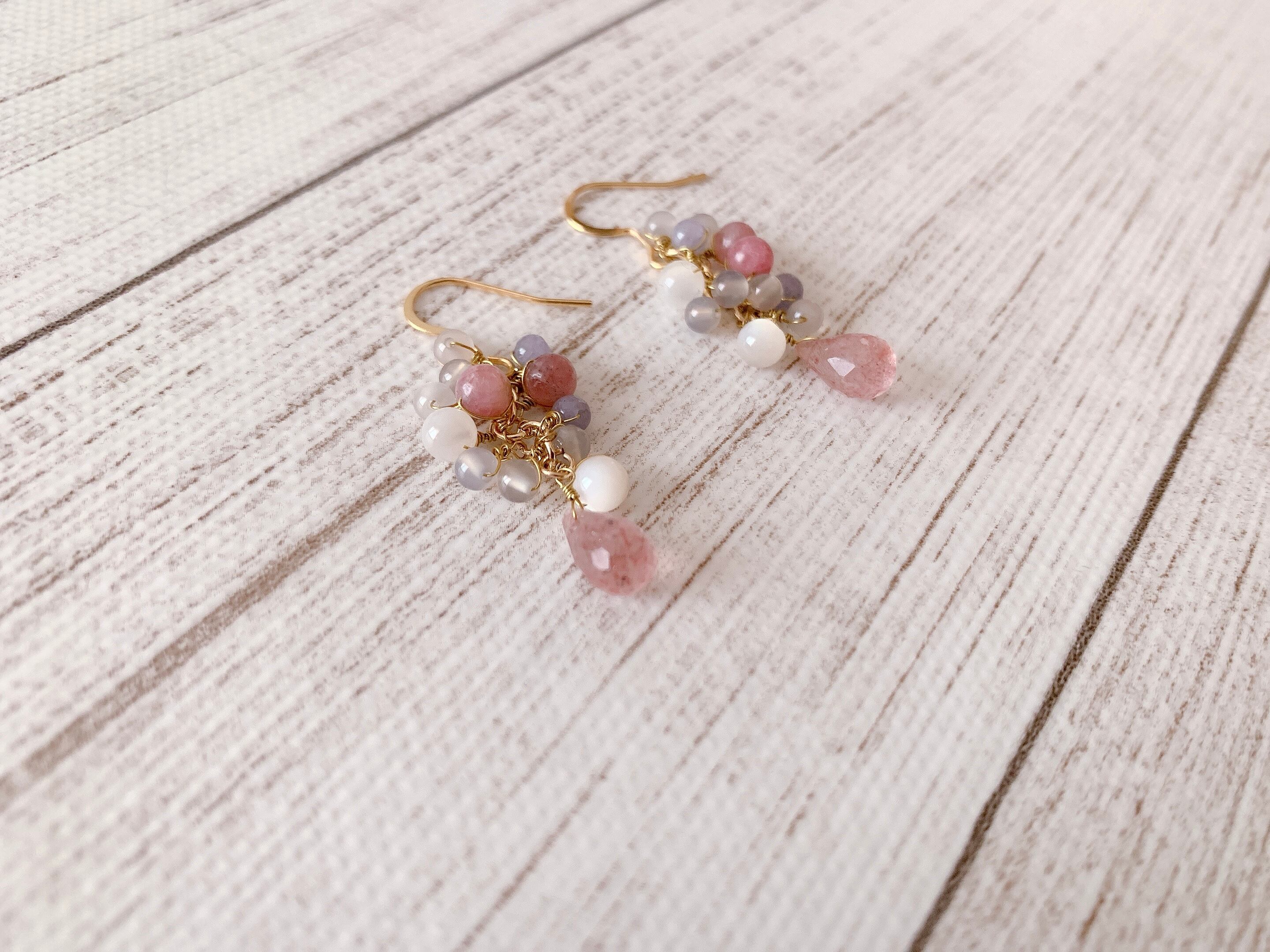 ピンクエピドートにトルマリン・ホワイトシェル・グレーオニキスを合わせて大人可愛い感じに仕上がりました!