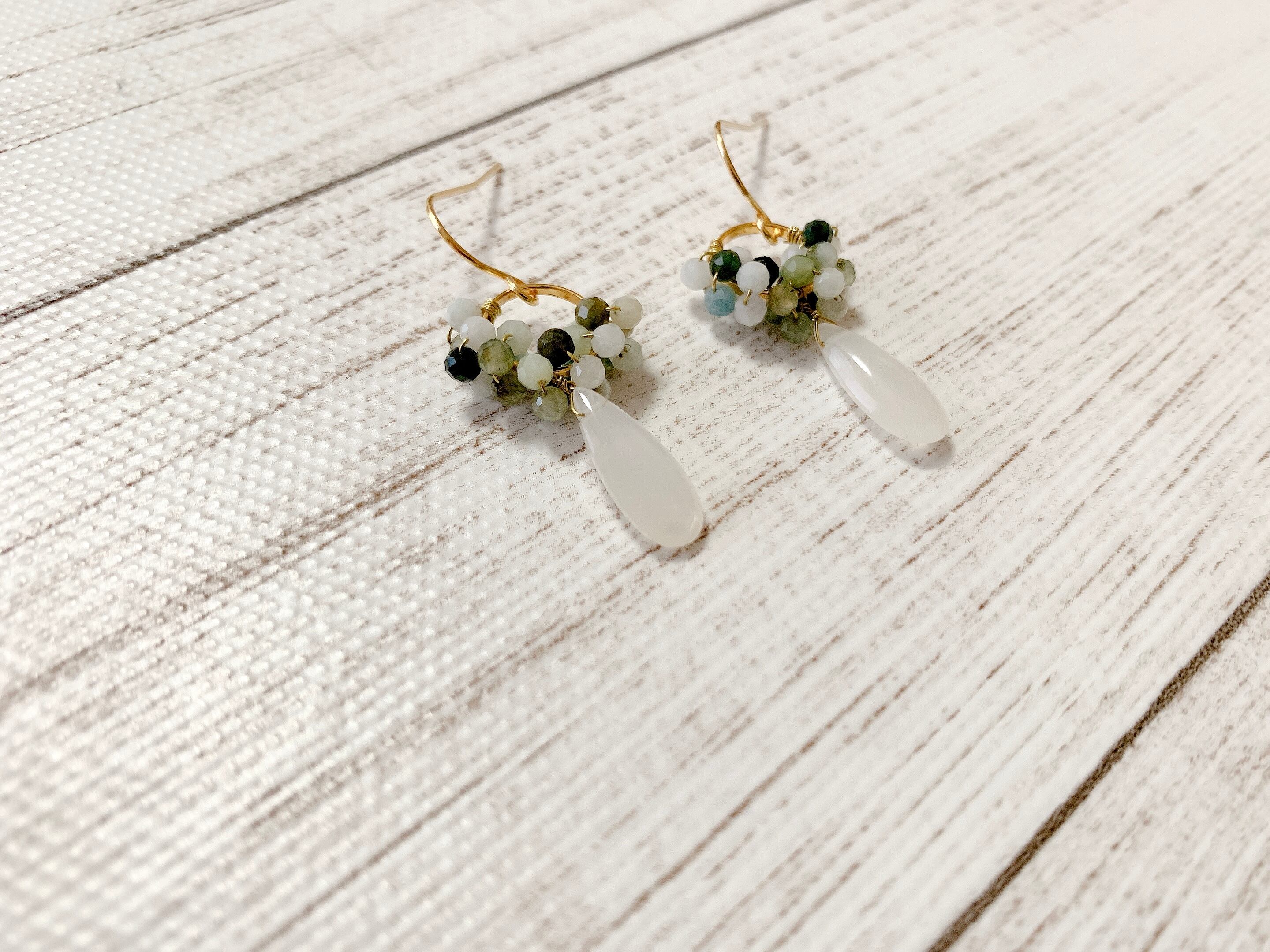 ムーンストーンをヒスイのグリーンが引き立てています。爽やかな印象となりました。