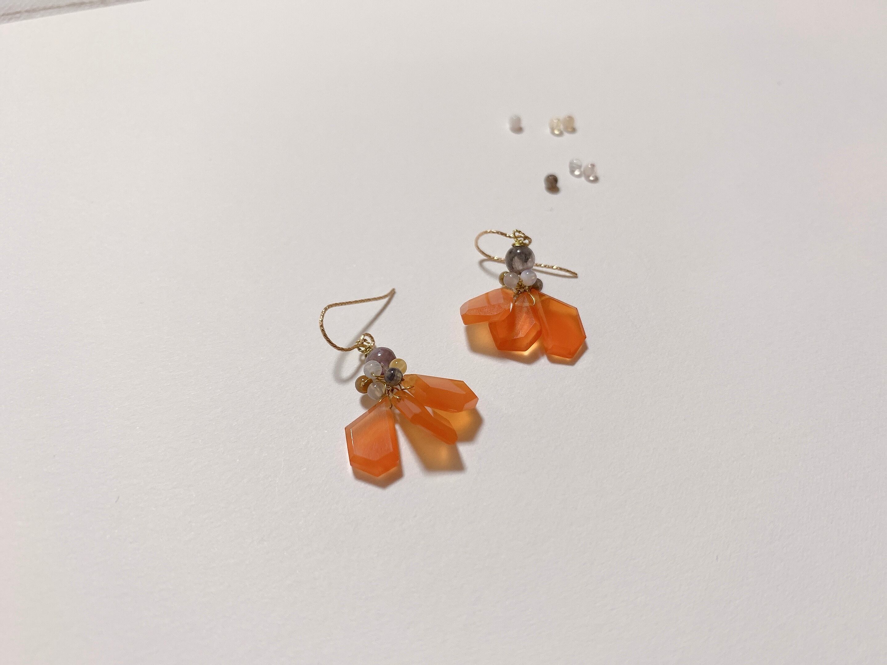 鮮やかなオレンジが可愛いカーネリアンにクォーツとアゲートのビーズを合わせています。