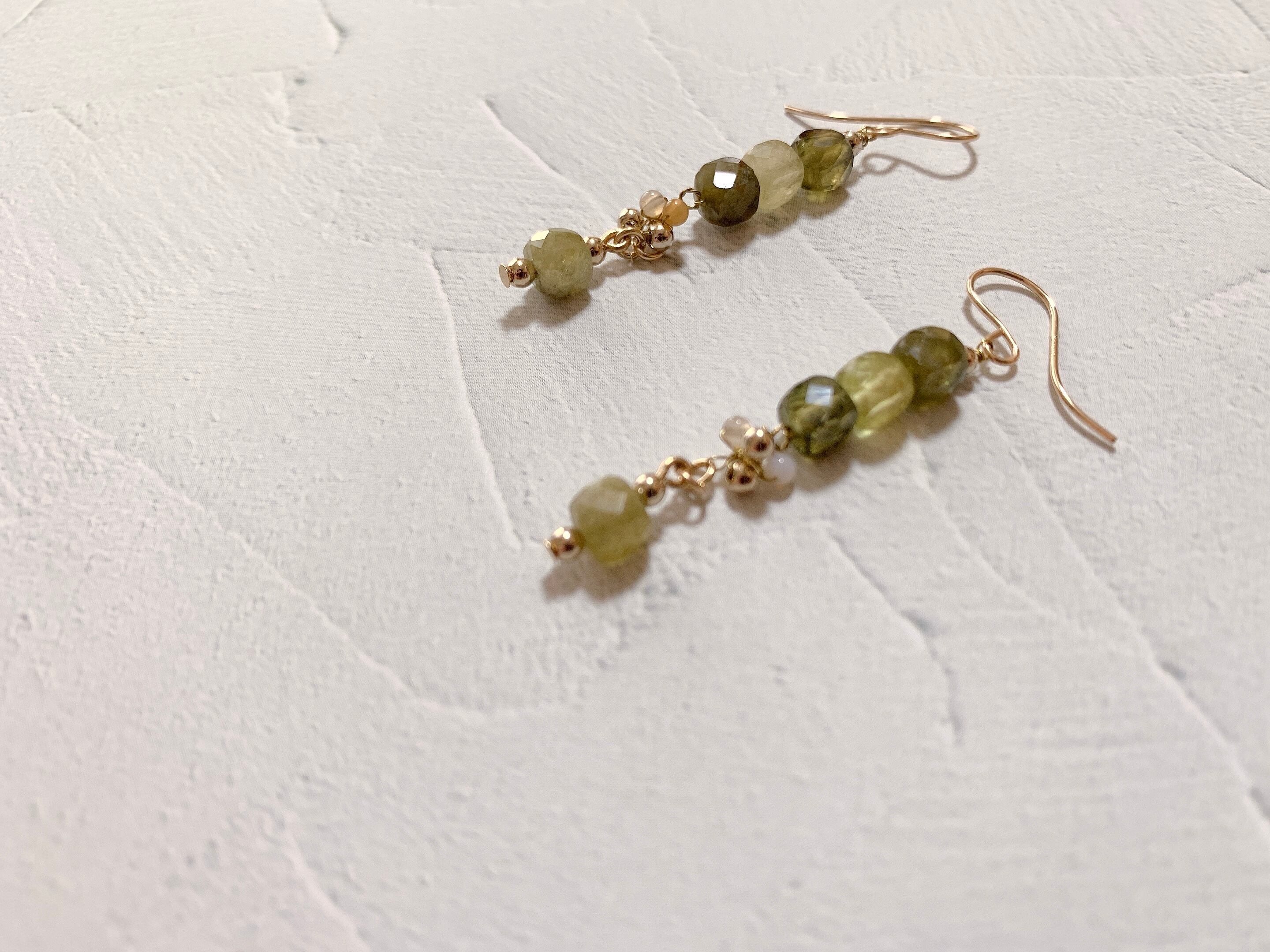 グロッシュラーガーネットキューブ5㎜・アゲートとゴールド色ビーズを合わせました。