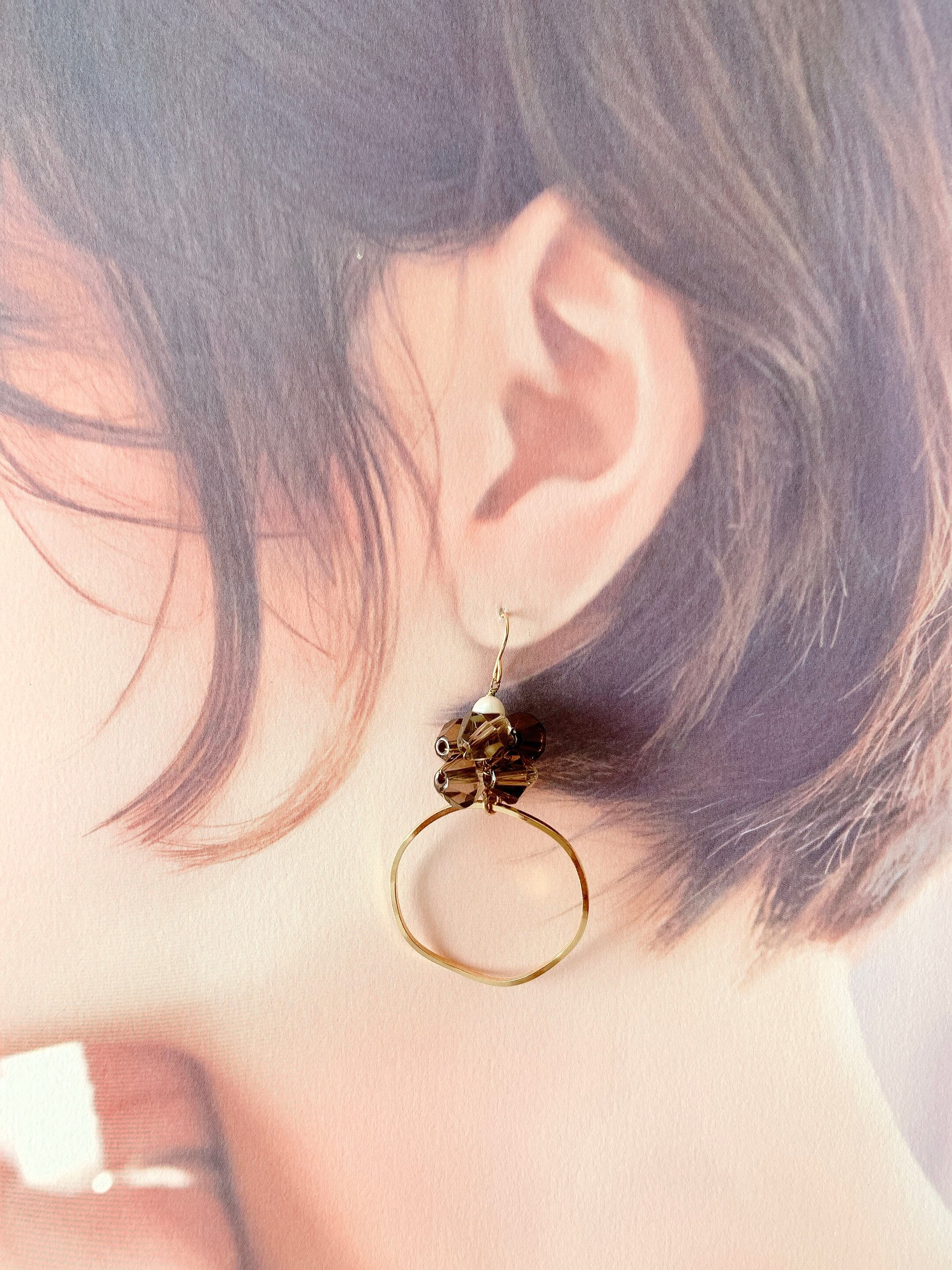 スモーキークォーツ×パール×ゴールド色フープを合わせました。どんな服装にも合います。