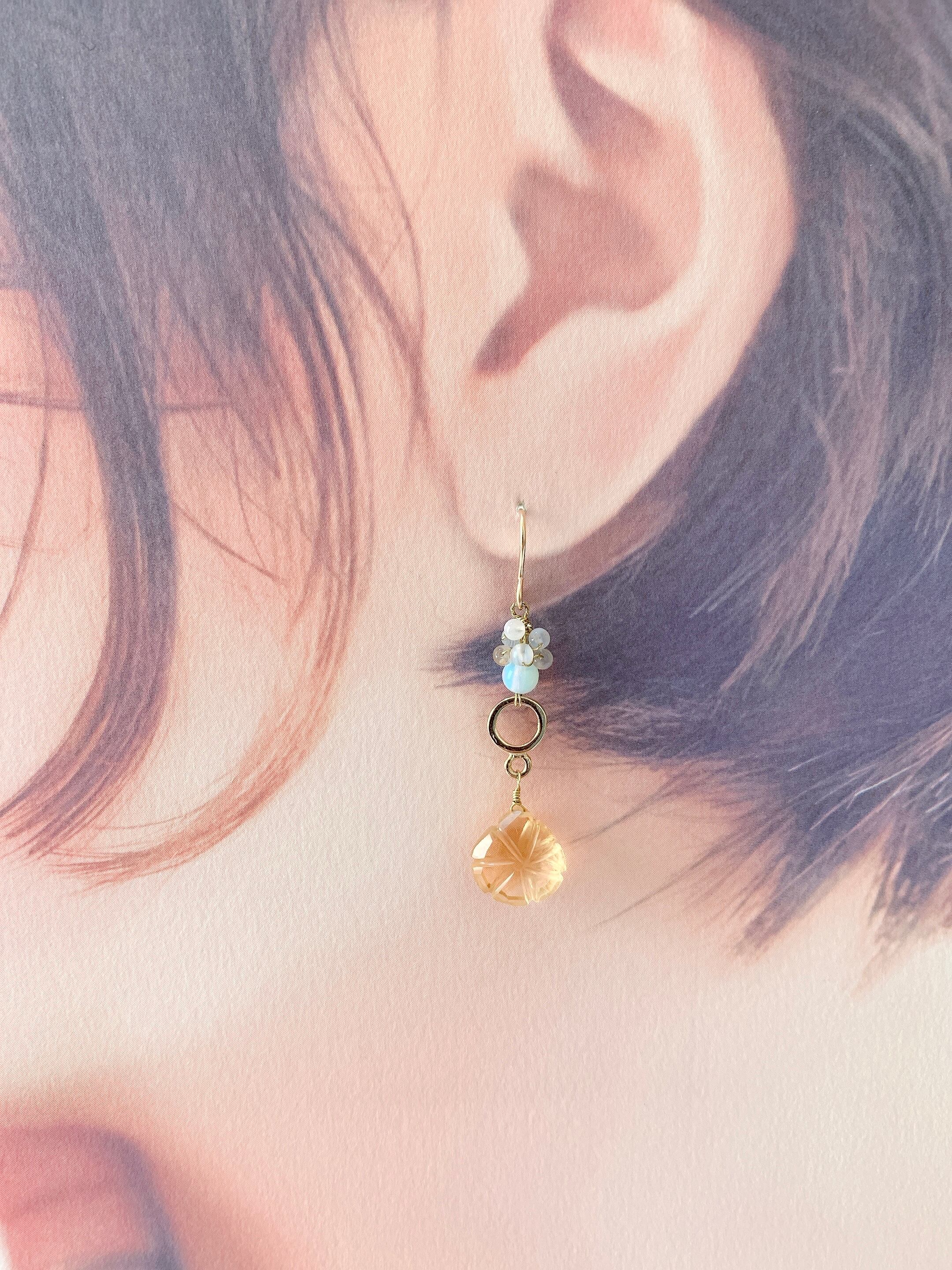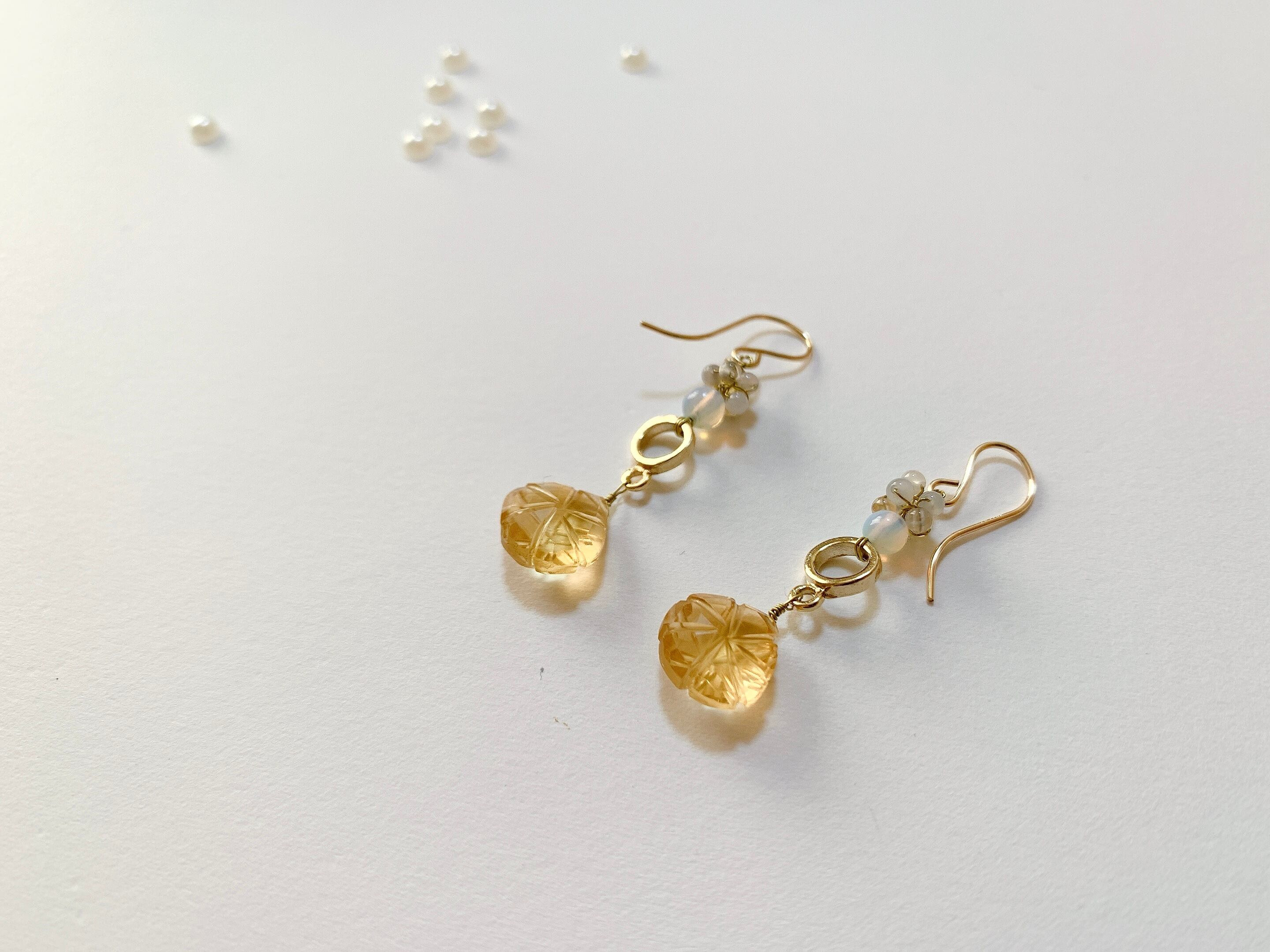 シトリンにオパール・アゲートのビーズとゴールド色パーツを合わせています。
