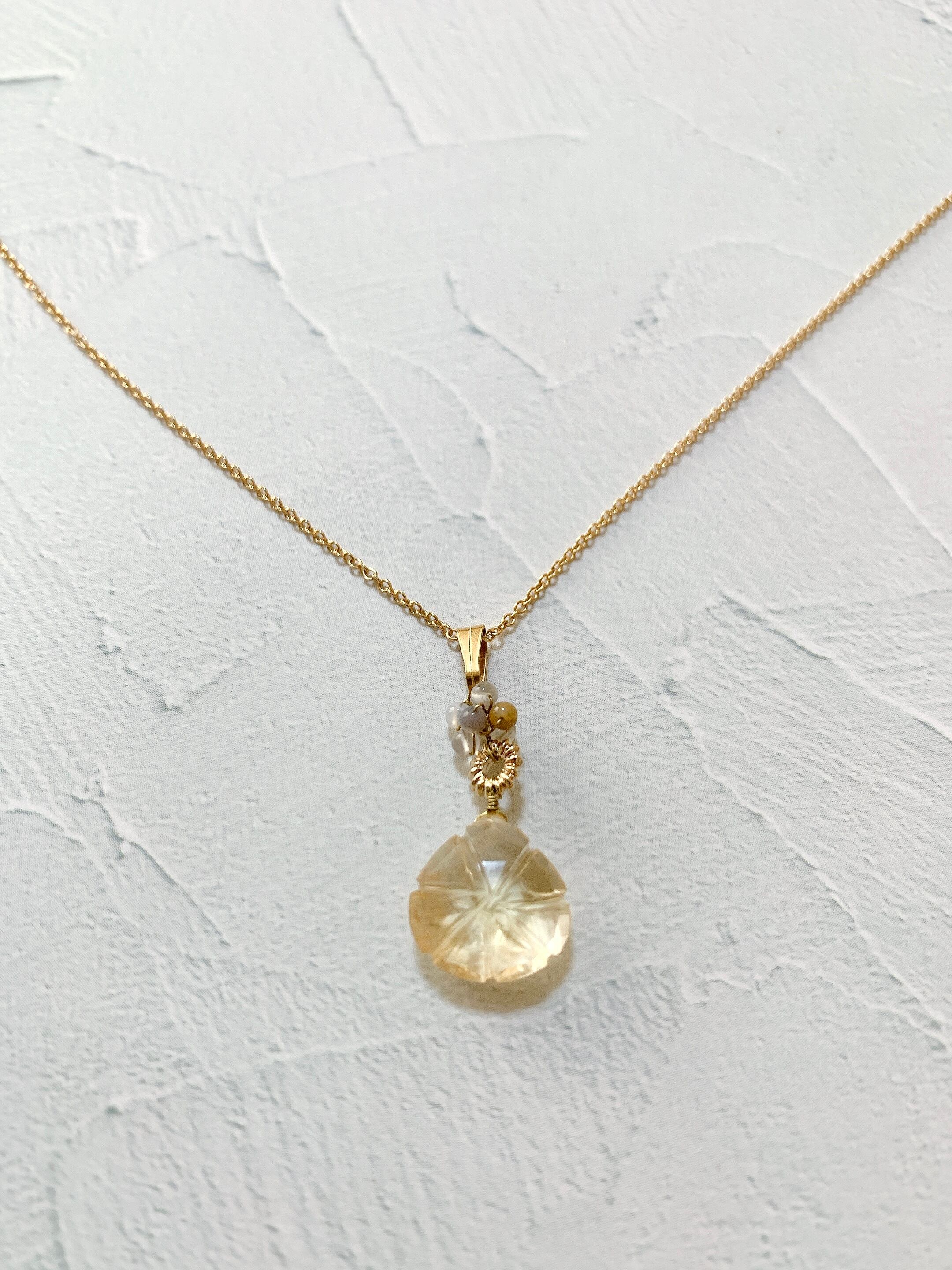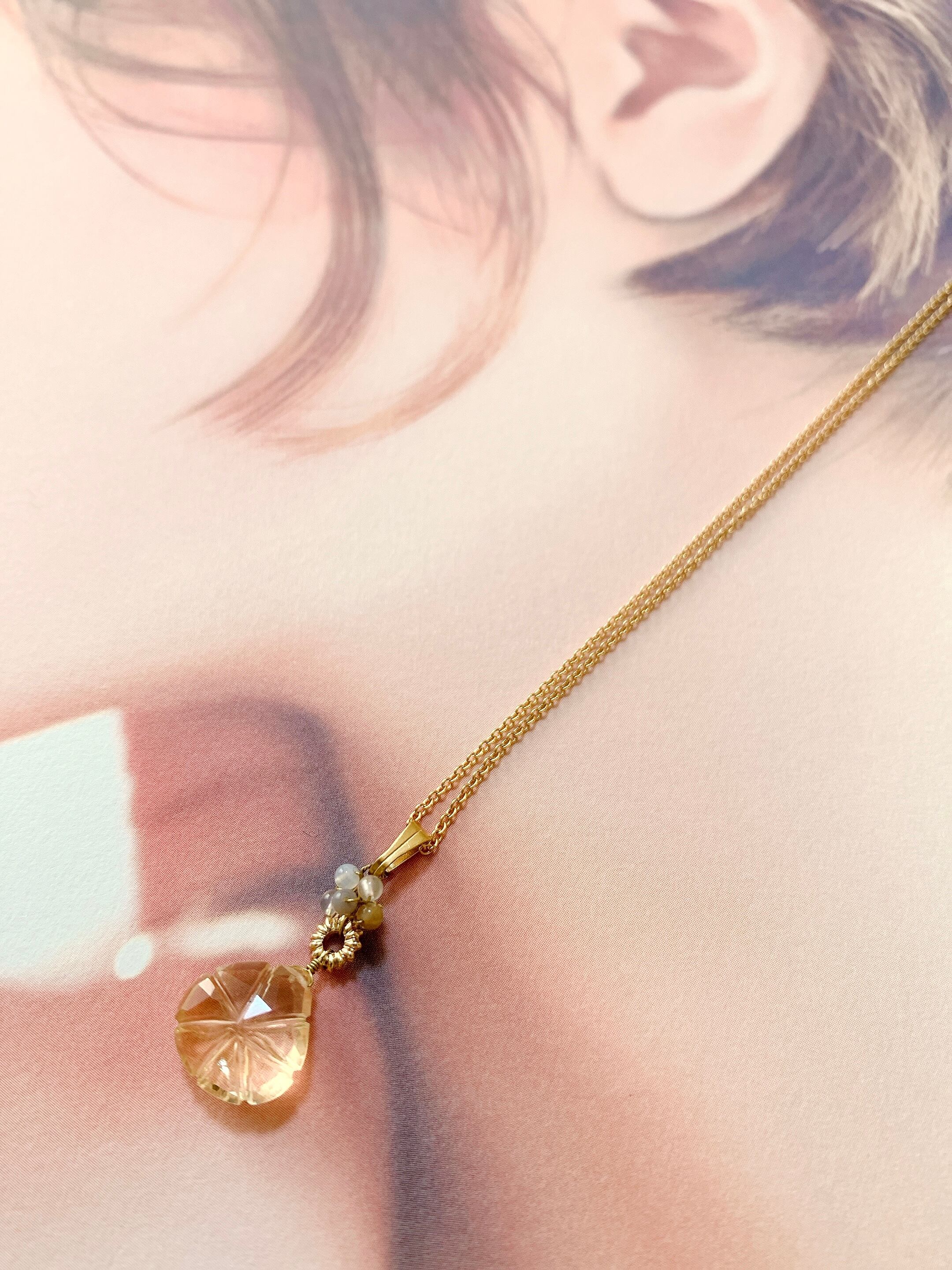 シトリンにイエローアゲートのビーズとゴールド色金具を合わせたネックレスを製作しました。