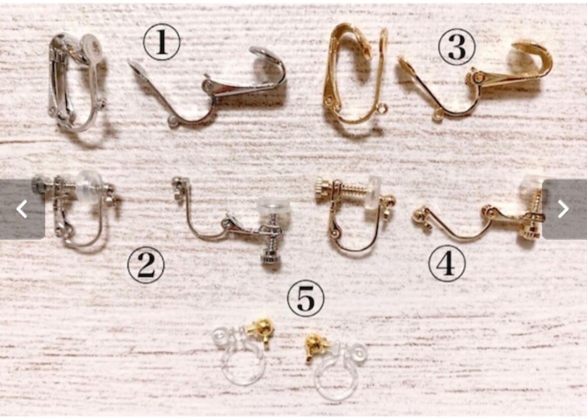 5種類のイヤリングを載せていますのでお選び頂きコメント欄にご希望のイヤリング番号をご記入下さい。ご記入の無い場合はピアスでのお渡しとなります。