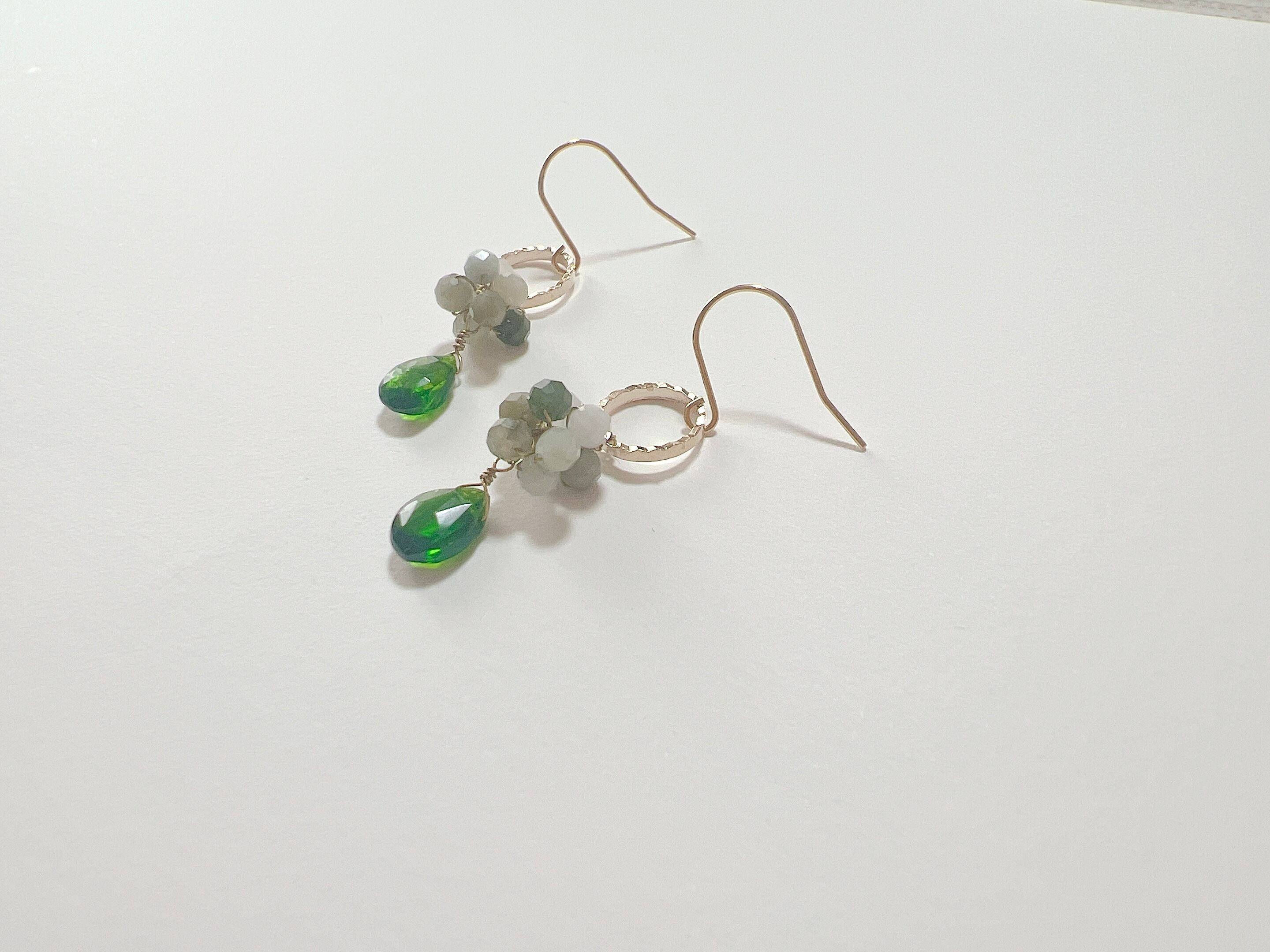 クロムダイオプサイドにヒスイビーズをあわせました。Oliveの定番デザインです。