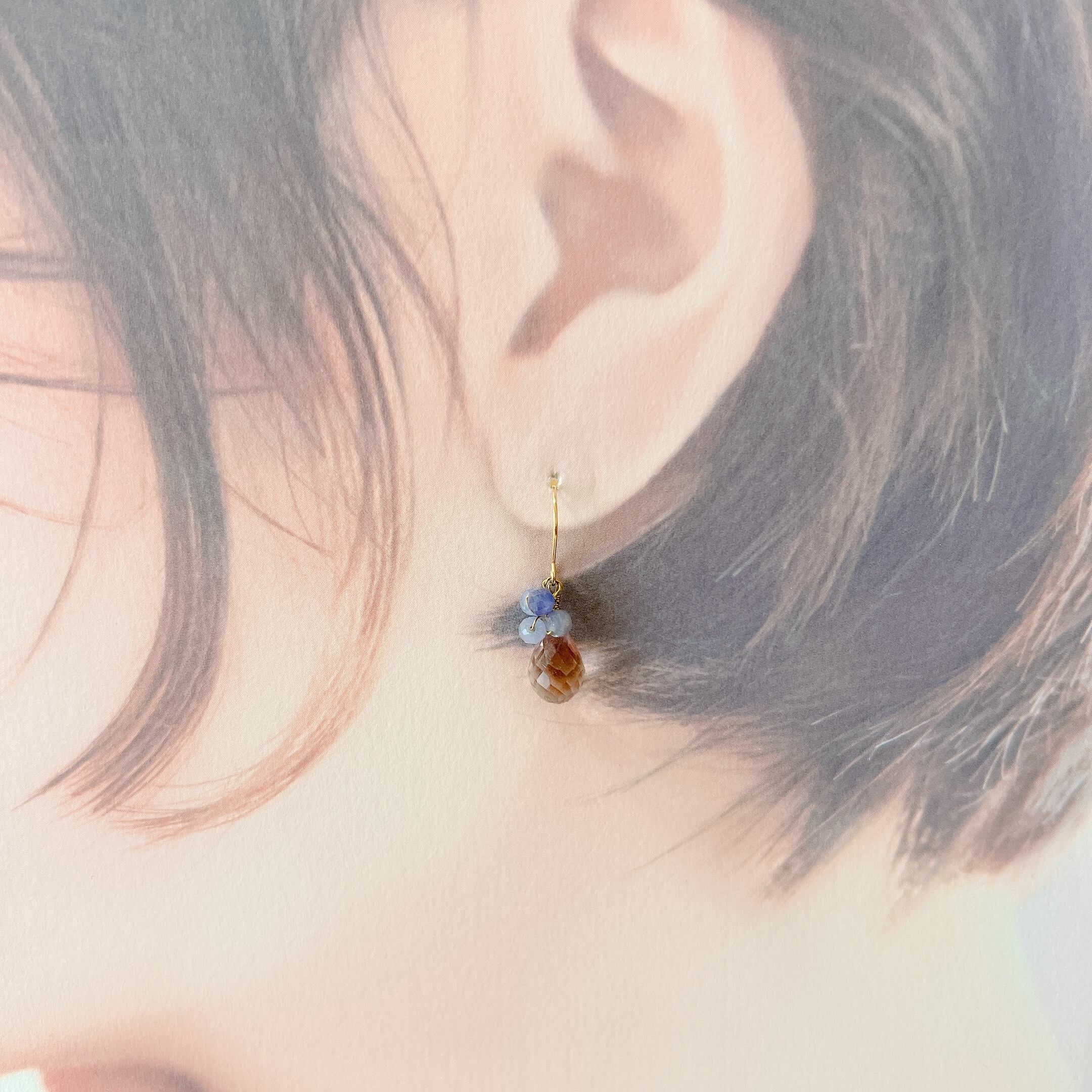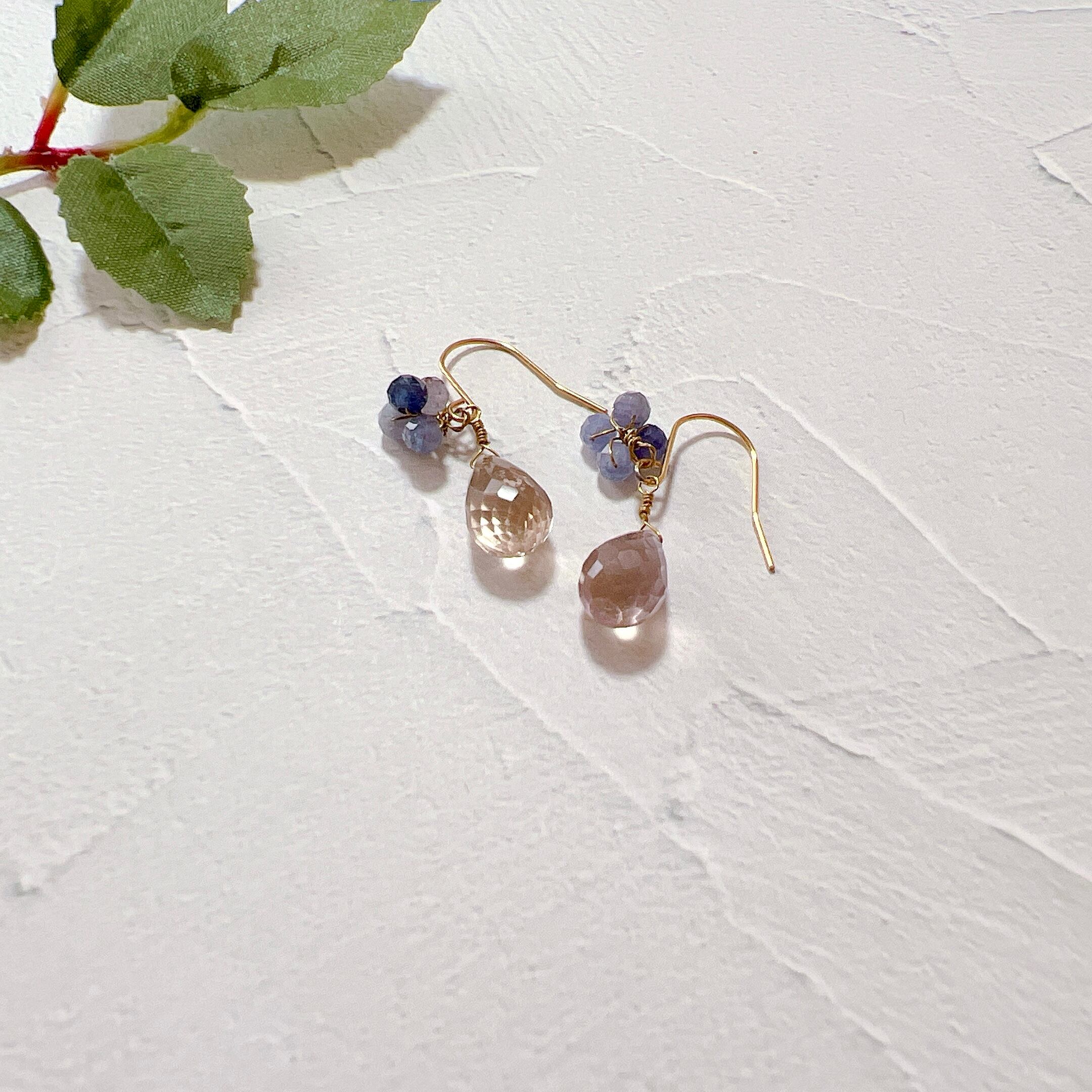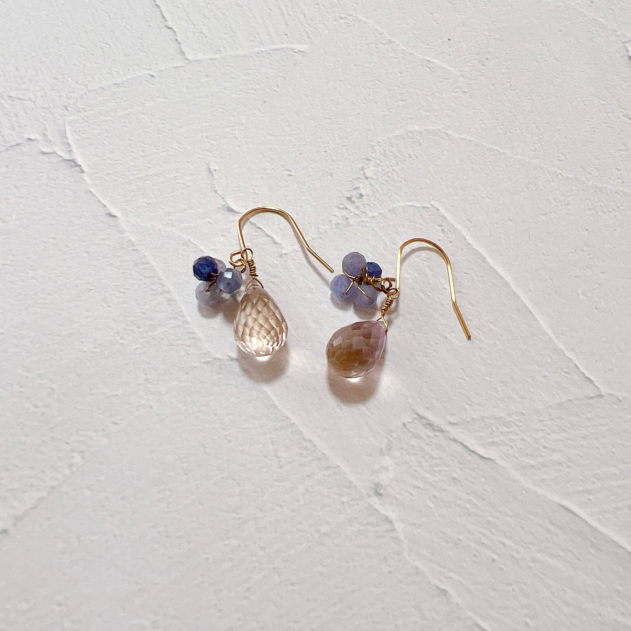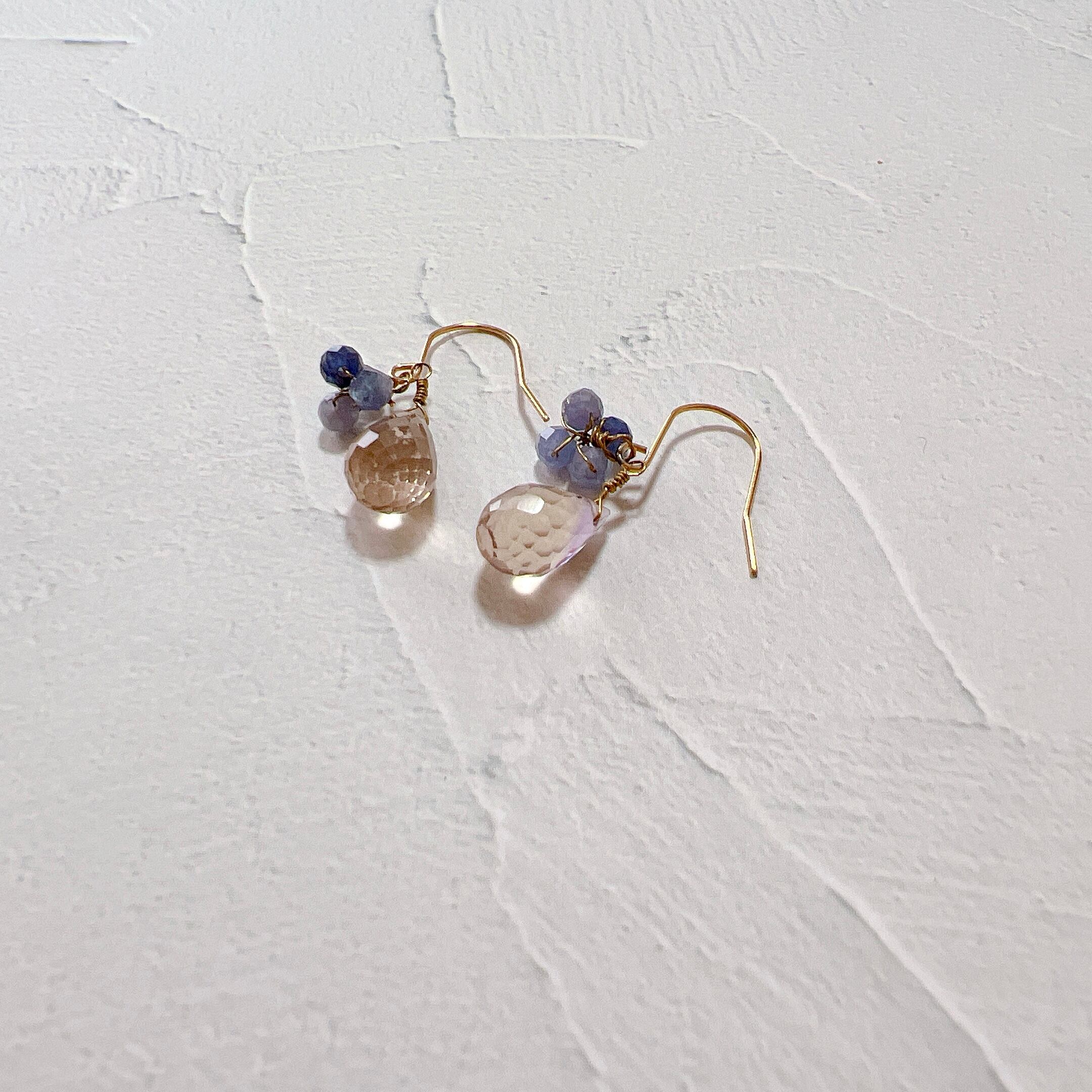 天然ジルコンにタンザナイトのビーズを合わせました。ジルコンはドロップブリオレットカットが綺麗です。