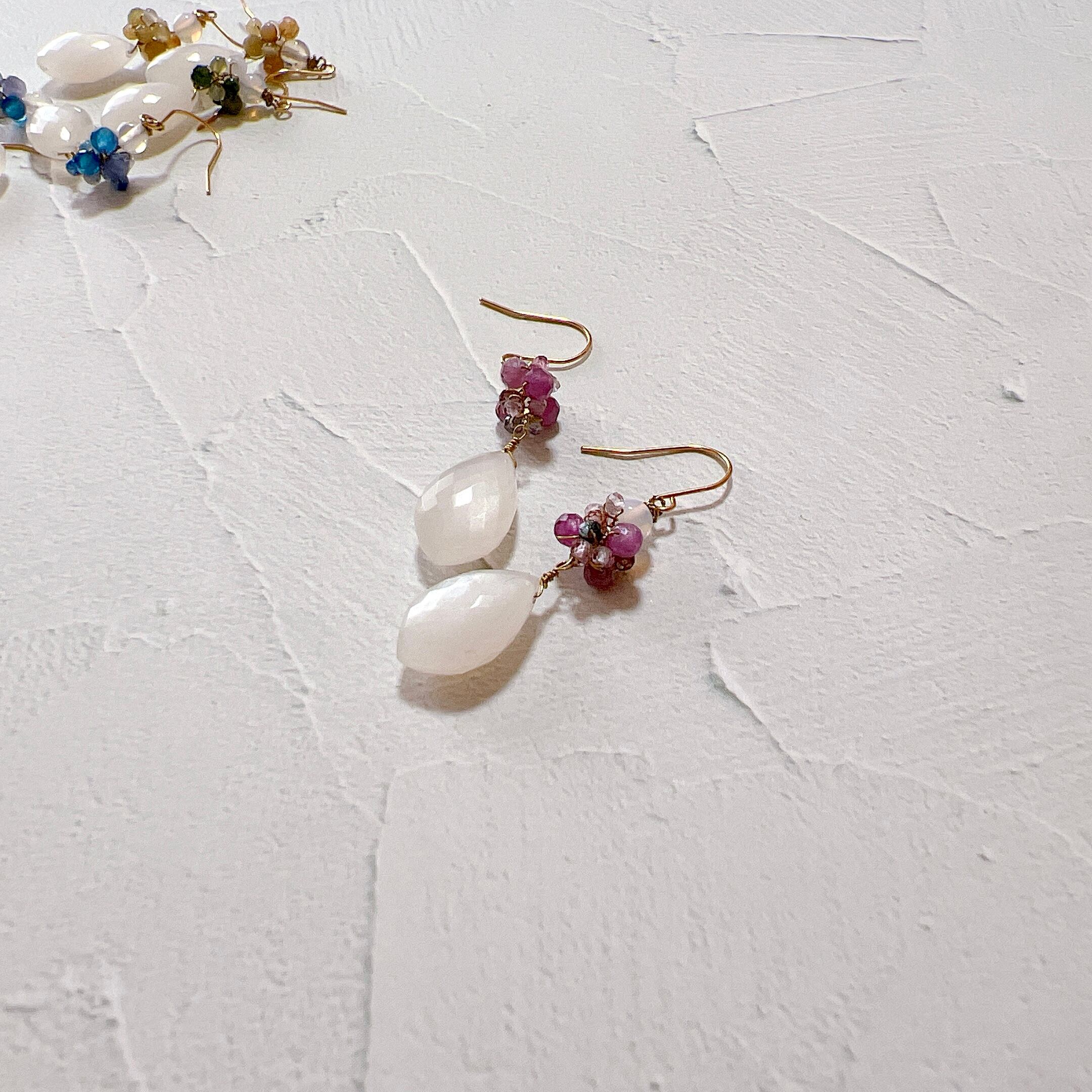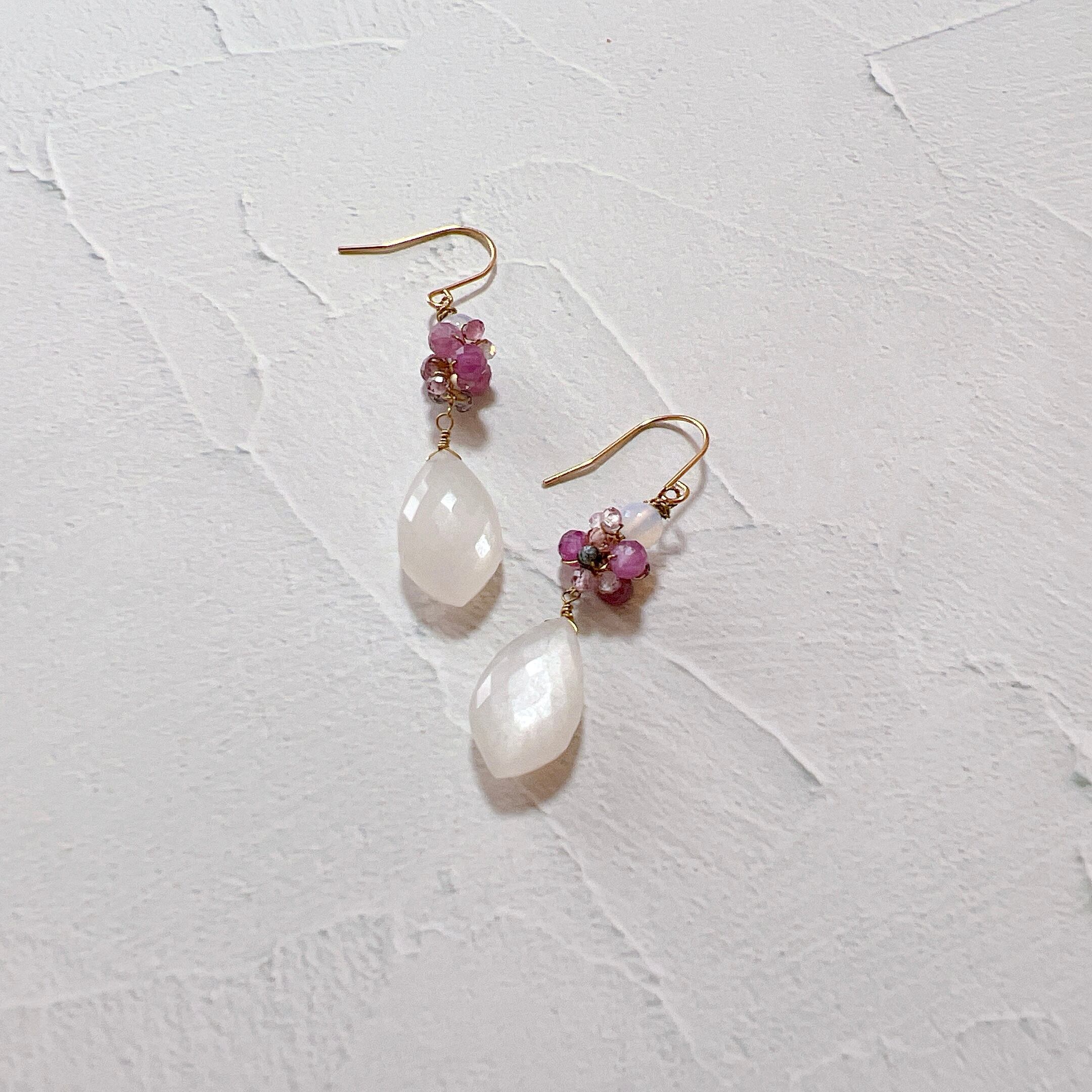 大人ピンク!乳白色のムーンストーンのカットが可愛いです。