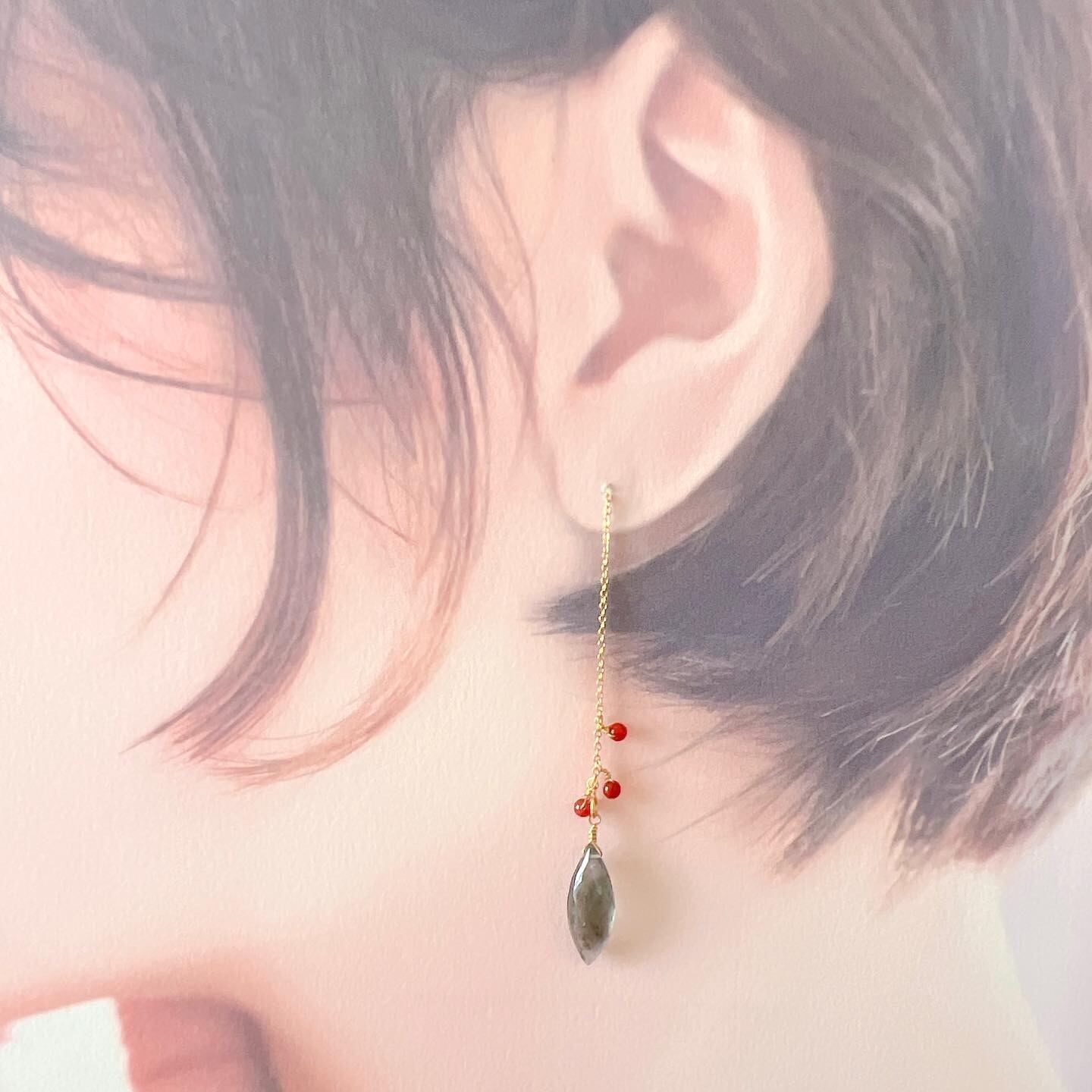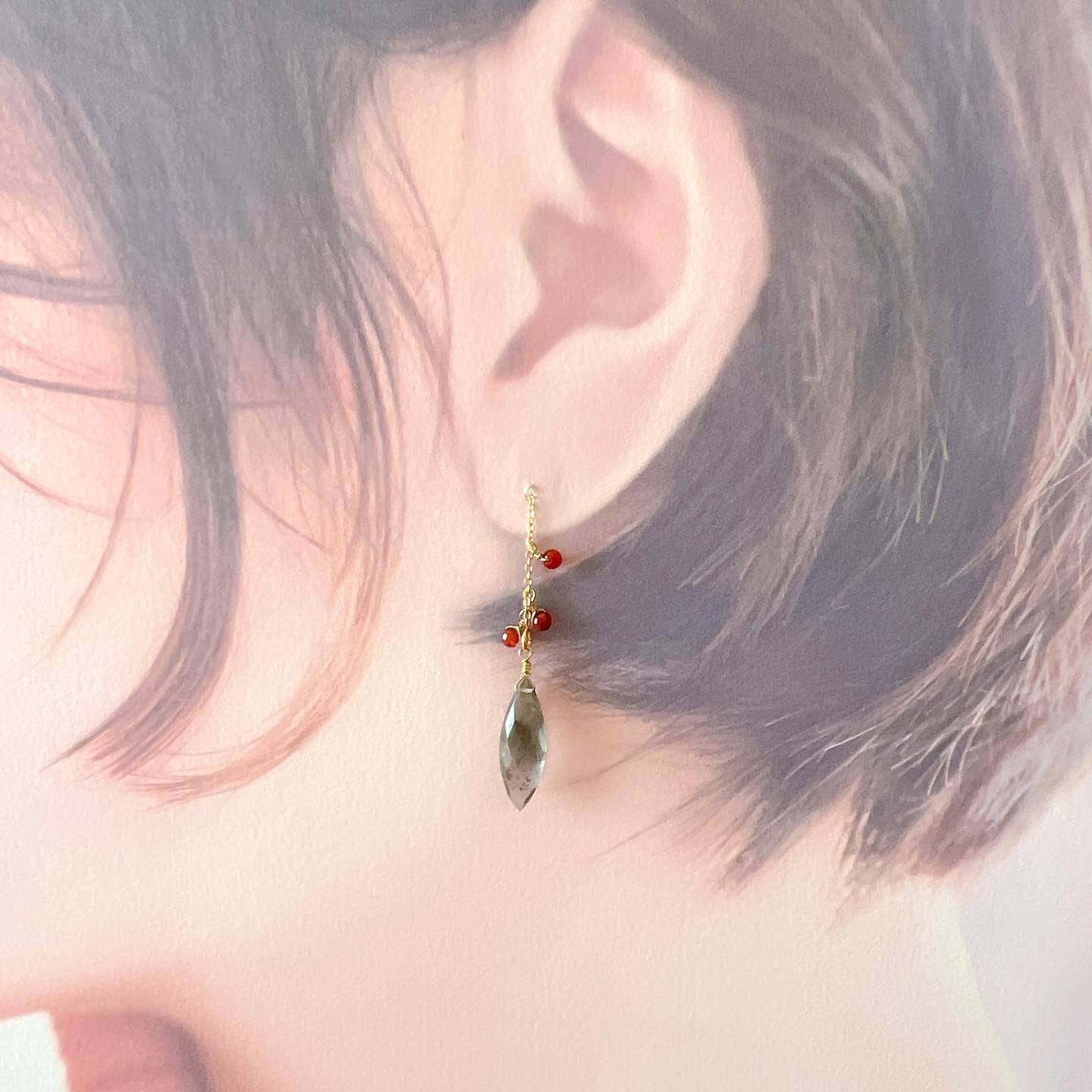 モスアクアマリンに小さなレッドアゲートがアクセントになっています!