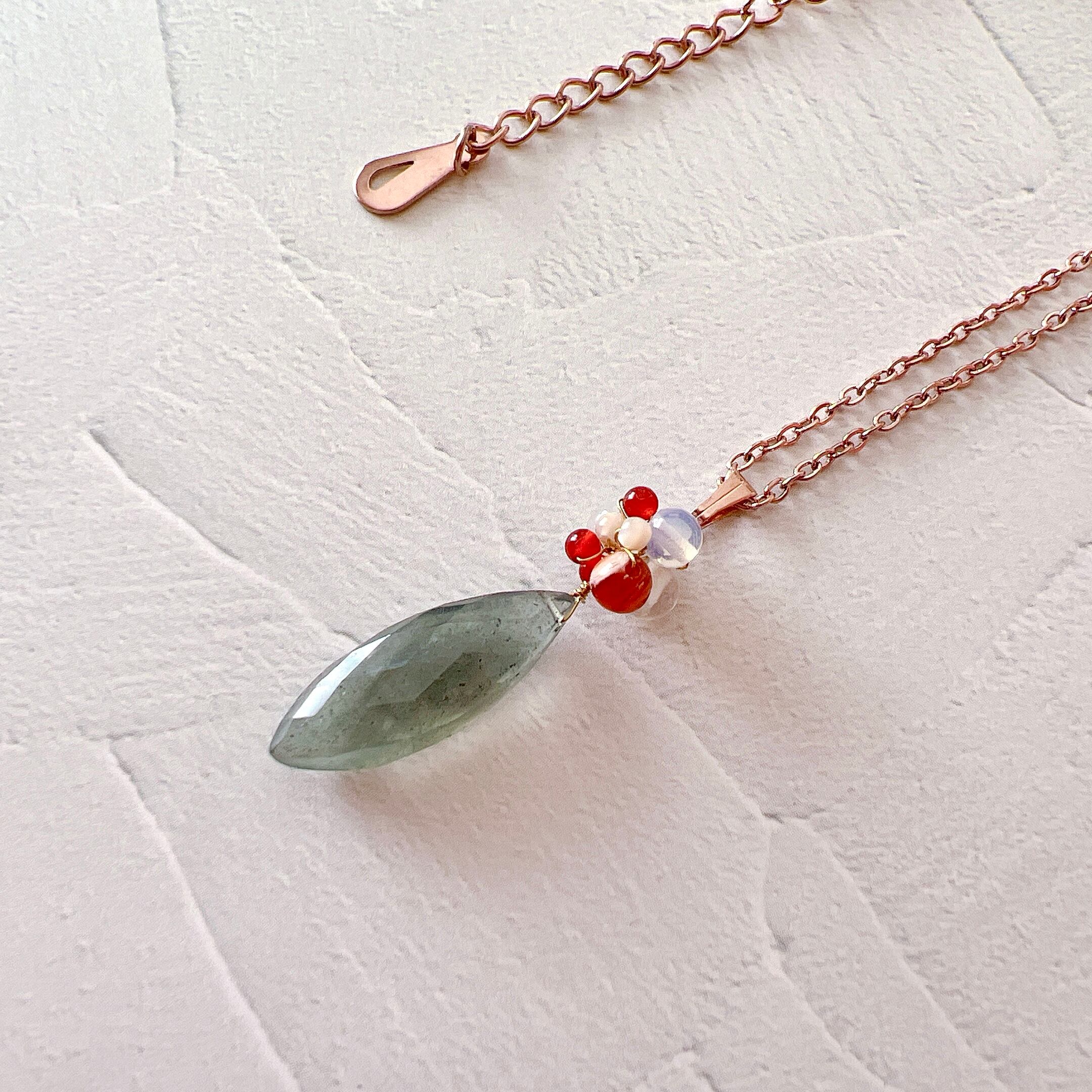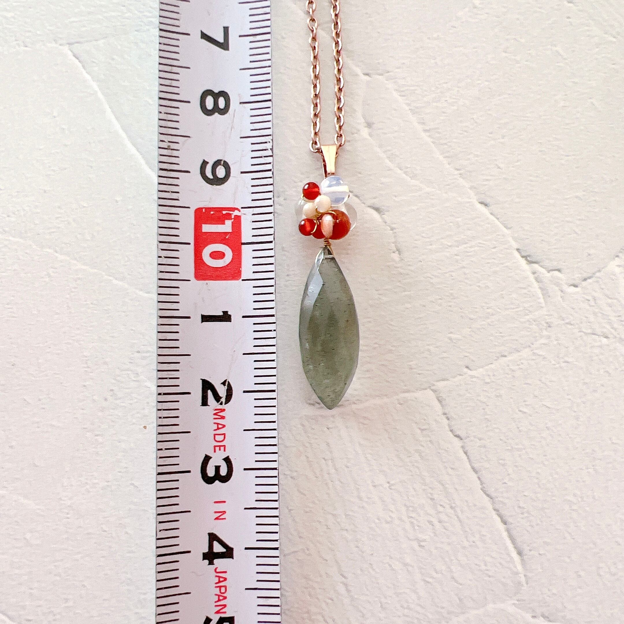 モスアクアマリンにオパールとレッドアゲートのビーズを合わせました。