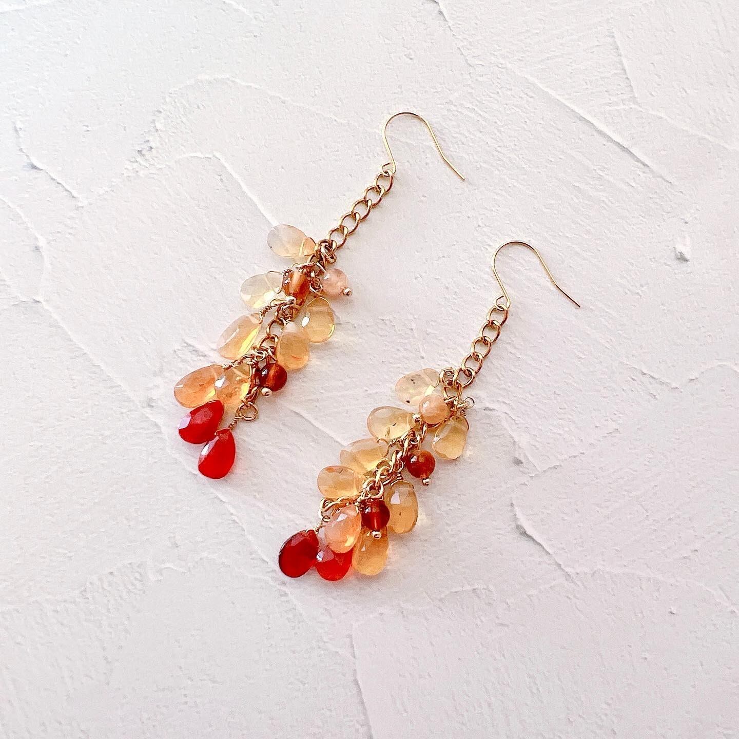 ファイアオパール(ファイヤーオパール)とオパールのビーズとゴールド色のチェーンを合わせました