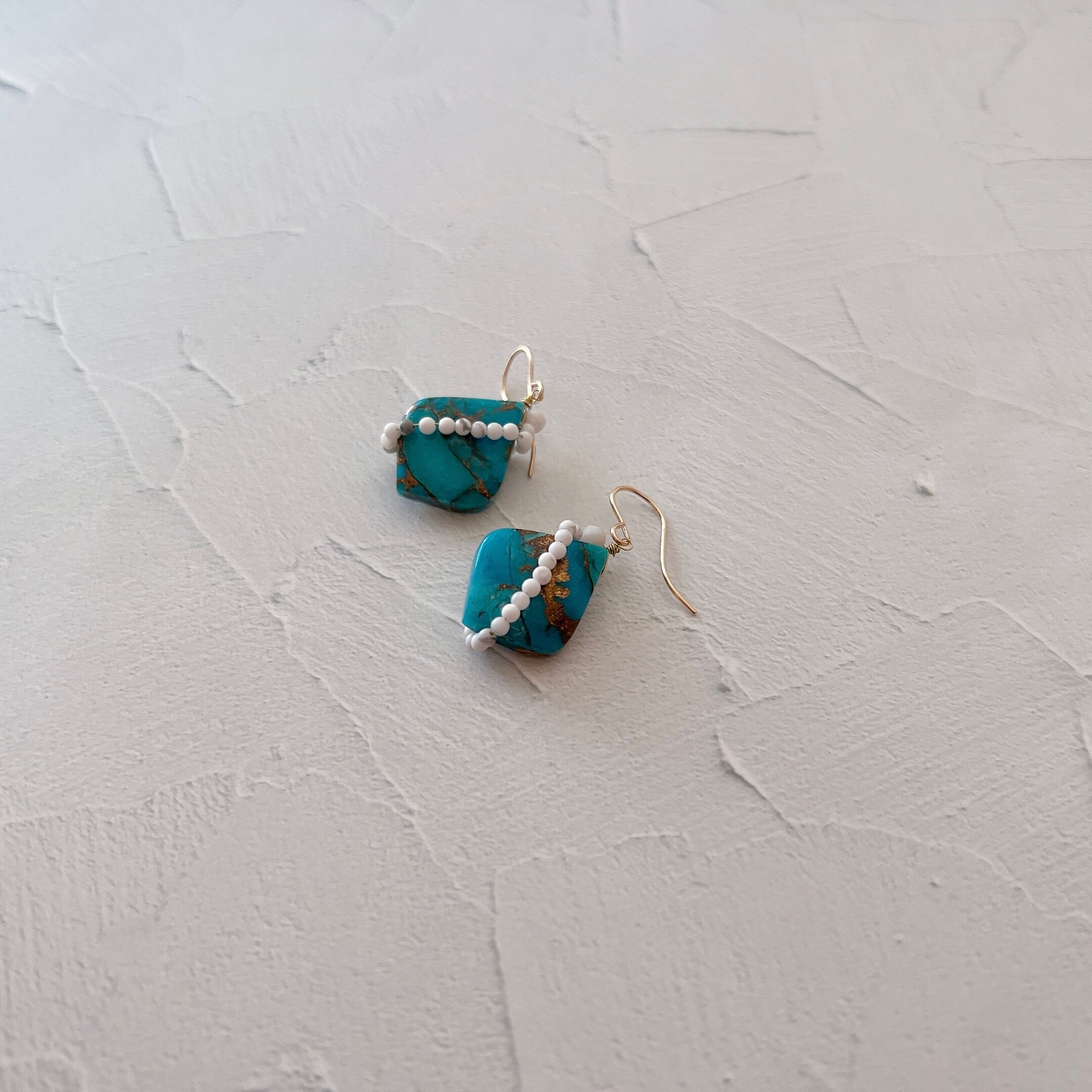 天然のアリゾナターコイズの小片を銅や青銅といっしょに高圧縮して形成されたものです。