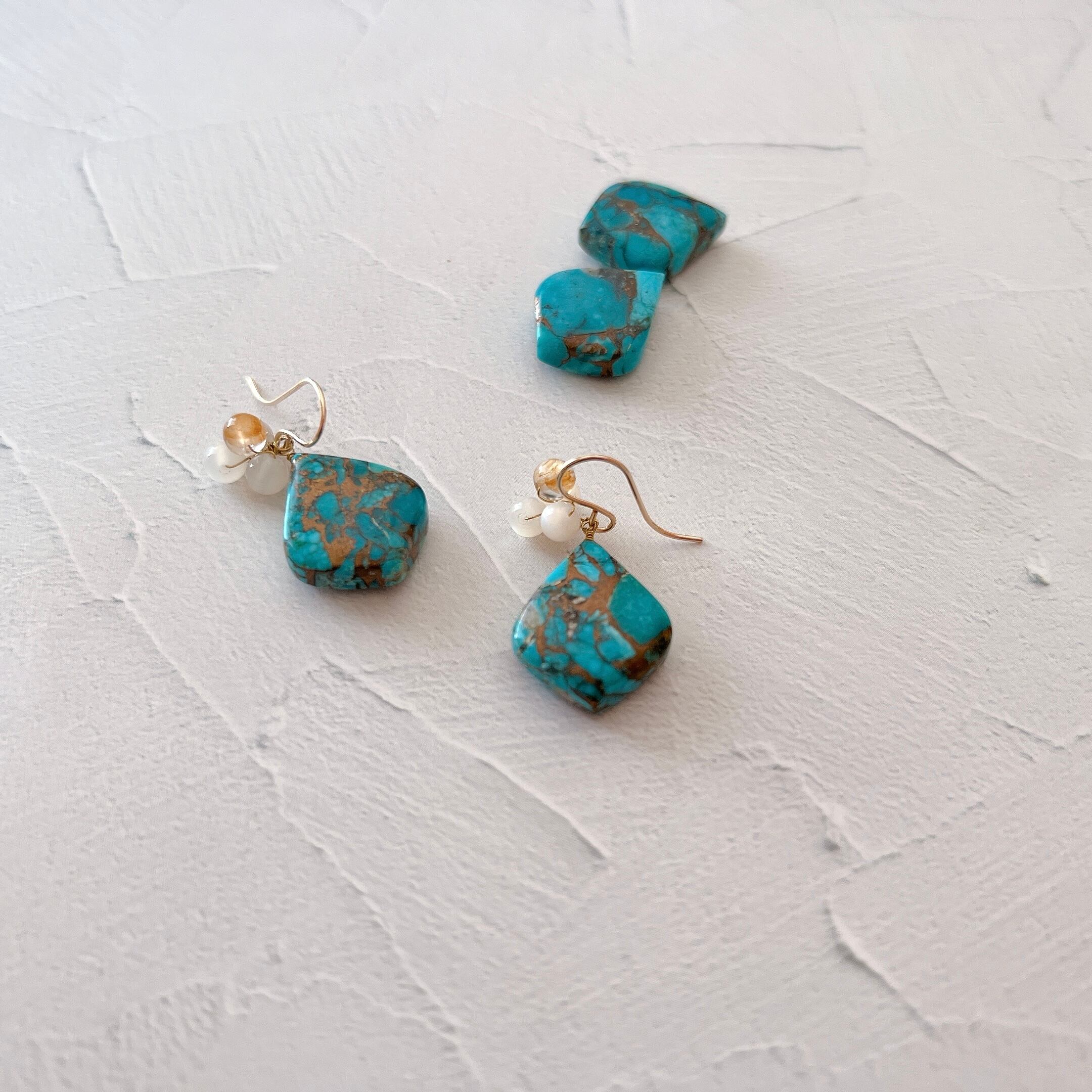 天然のアリゾナターコイズの小片を銅や青銅といっしょに高圧縮して形成されたものです。