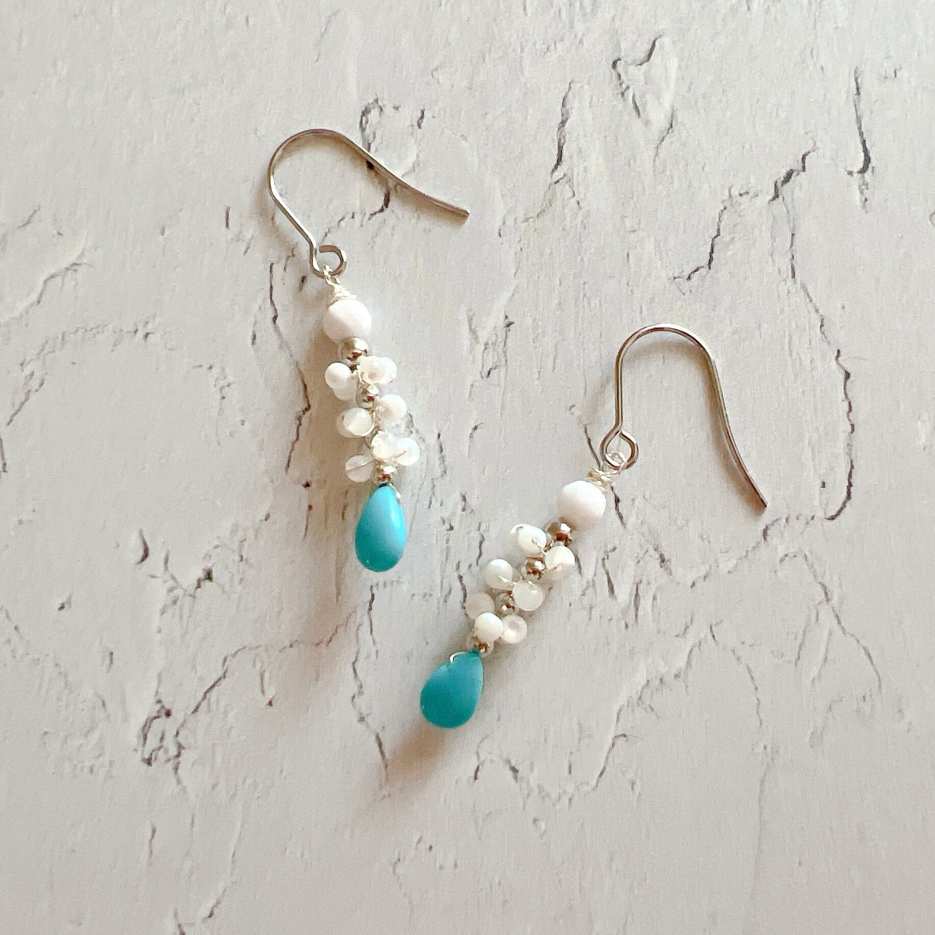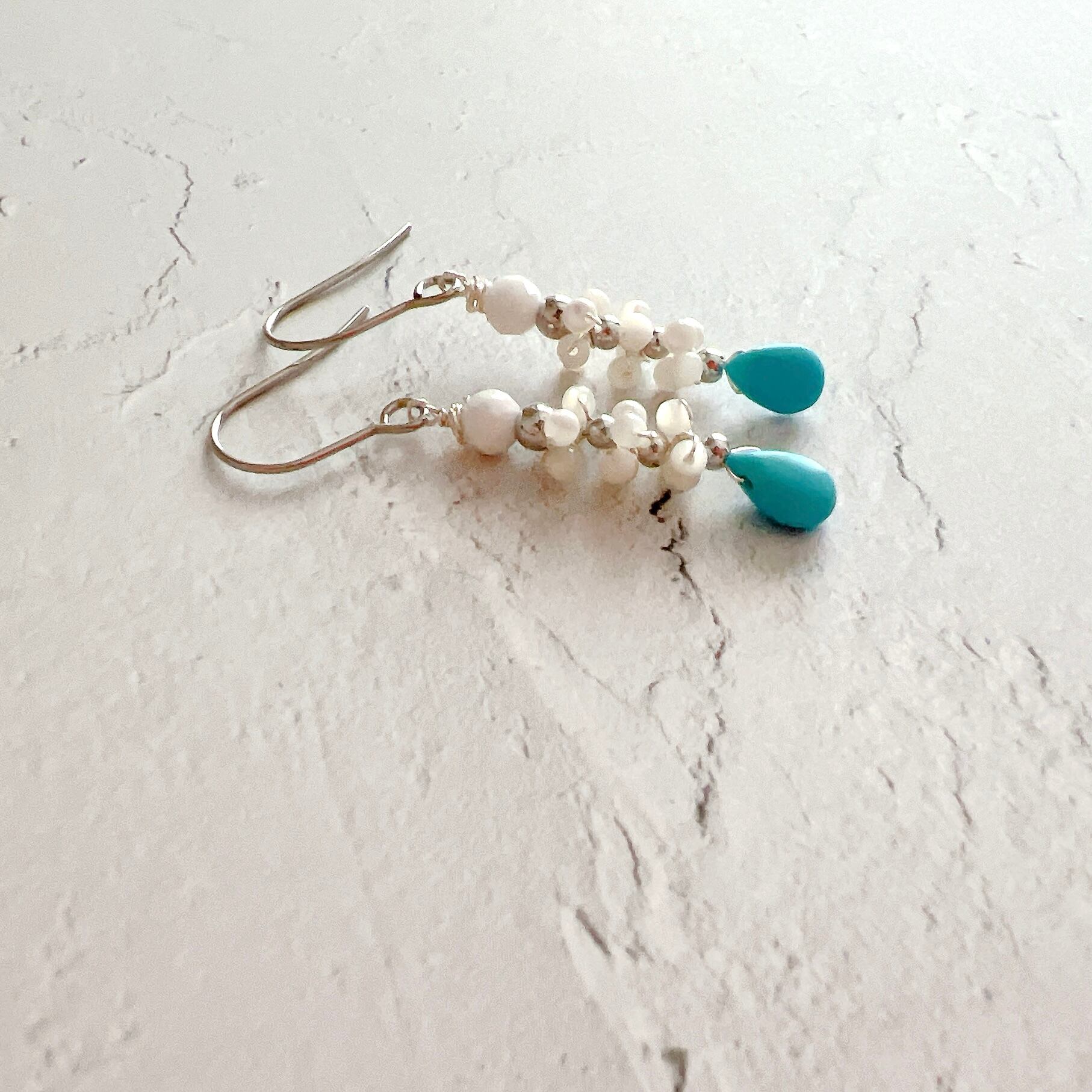 ターコイズにマザーオブパールとホワイトオニキス・シルバー色のビーズを合わせました✨